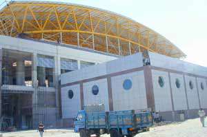 İzmirde 11-21 Ağustos tarihlerinde yapılacak olan 23. Universiade oyunlarında kullanılmak üzere inşaa edilen 10 bin kişilik Halkapınar Spor Salonu inşaatı tüm hızıyla devam ediyor.