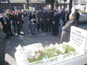 İzmir’i Sevenler Derneği Başkanı Sancar Maruflu’nun organize ettiği törene, ünlü bestekarın yakınları, kadim dostu Abdurrahim Özer, öğrencisi bestekar Kaya Bekat, araştırmacı-yazar Ahmet Gürel, aile yakınları ve sevenleri katıldı. Geleceğini bildiren Gönül Yazar ise gelmedi.