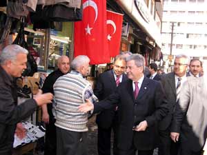 Demirtaş ve beraberindeki İZTO Meclisi üyeleri, daha sonra esnafla çarşıyı gezdi.