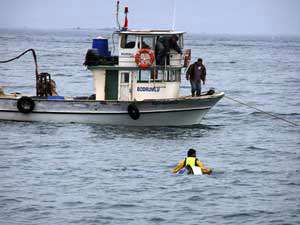 Yelken dersi almak için sabah saatlerinde eğitmenleriyle birlikte denize açılan 3 kursiyer, havanın bozması nedeniyle alabora olan teknelerinden denize düştü. Dalgalarla boğuşan kursiyerleri olayı görerek yardıma gelen balıkçı teknesi kurtardı.