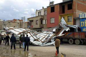Çatının düşmesi sonucu evinin çatısı çöken Rıfat Özcanlı, "Evde otururken büyük bir gürültüyle kalktık. Biz deprem oluyor zannettik. Evin içerisinde çatı parçalarını görünce şok olduk. Şükürler olsun canımıza bir şey olmadı" dedi. Polis, yaptığı ilk öncelemede, 3 aracın ve 3 evin hasar gördüğünü tespit etti.