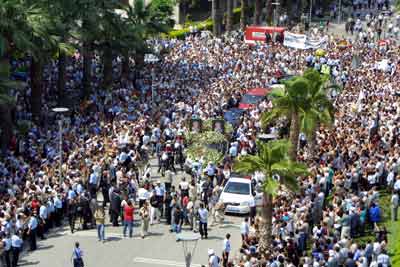 1. Kordon’dan geçerek törenin yapılacağı Konak Meydanı’na götürülen cenazenin geçişi sırasında, yol kenarına dizilen çok sayıda İzmirli, Piriştina’yı son yolculuğuna üzüntüyle uğurladılar. Vatandaşların bazılarının Meydan’daki törene katılmak için konvoya dahil olduğu görüldü.