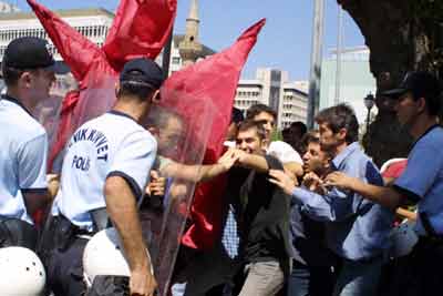 Kendilerine HÖC ismini veren 10 kişilik bir grup, Türkiye genelinde DHKP-C’lilere karşı başlatılan operasyonları protesto etmek için İş Bankası önünde toplandı. Göstericilerin slogan atması ve basın açıklaması yapmasına izin vermeyen polis, açıklamayı 20 metre ileride bulunan Kemeraltı girişinde yapmalarını istedi. Polisin gösterdiği yerde açıklama yapmak istemeyen grup arasında sözlü tartışma başlayınca, çevik kuvvet ekipleri olaya müdahale etti. Göstericileri abluka altına alan polis, grubu iterek 20 metre ileriye götürdü. Polisin müdahalesine slogan atarak karşılık veren grup, daha sonra DHKP-C’lilerin sahte evraklarla tutuklandığını iddia ederek, serbest bırakılmaları için hükümete seslendi.