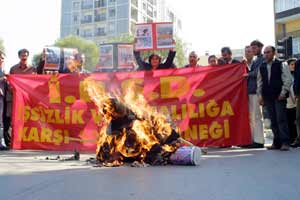 Öğle saatlerinde Alsancak Garı önünde toplanan İşsizlik ve Pahalılığa Karşı Savaş Derneği (İPSD) üyeleri, pankart açıp slogan atarak İngiliz Konsolosluğuna kadar yürüdü. Konsolosluk önünde topluluk adına basın açıklaması yapan İPSD İzmir Şube Başkanı Yusuf Gencer, 2 yıl önce başlayan saldırıyla Irakın işgal altına alındığını, burada yaşananların insanlık dışı ve ürkütücü olduğunu kaydetti. Gencer, "İşgal güçleri, 2 yıl içinde Irak halkının şahsında tüm dünya halklarına karşı vahşet gösterisi yapmıştır. İnsanlar öldürülmüş, binlerce ev yıkılmış, birçok yerleşim birimi haritadan silinmiştir. İşgalin ardından geçen 2 yıldan sonra, bütün işgal güçleri çıkmaza girmişlerdir. Her türlü katliama rağmen Irak halkının onurluca direnişi sürmektedir. Biz de direnen Irak halkının yanındayız" dedi.