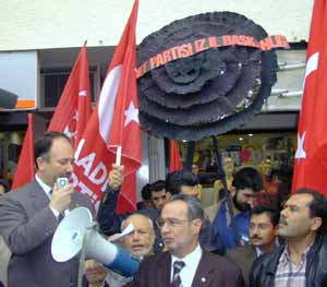 Saadet Partisi (SP) İzmir İl Başkanlığı tarafından düzenlenen protesto eyleminde ABD İzmir Konsolosluğu’nun kapısına siyah çelenk bırakılırken, SP İl Başkanı Şerafettin Kılıç da, ABD mallarını boykot etme çağrısında bulundu.