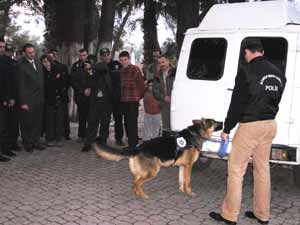 resi’nden 2 olmak üzere toplam 4 yabancı kursiyerin aralarında bulunduğu, değişik illerden eğitime katılan Emniyet Genel Müdürlüğü’nden 5, Gümrük Muhafaza Genel Müdürlüğü’nden 4 olmak üzere 13 kursiyer, 8 kurs eğitmeni, 1 tercüman ve araç şoförü toplam 23 kişilik grup ile 13 dedektör köpek çalışmalarını tamamladı.