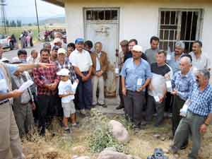 Kaymakam Hüseyin Eren, basın mensuplarının toplantı odasında beklemelerini isterken Konyar’ı da makamına davet etti. Ancak Konyar içeriye basın mensuplarının da alınmasını istedi. Bu sırada gerginlik meydana gelirken, Konyar ve köylüler sekreter odası önündeki görevli barikatını aşarak odada yere oturdu. Grup daha sonra kaymakamlıkta bulunan İlçe Emniyet Müdürü Nusret Demir ile birlikte Kaykamam Eren’in odasında bir görüşme yaparken, basın mensupları görüşmeye alınmadı. Görüşme sonrası Kaymakam Eren, devlet memuru olduğu için açıklama yapamayacağını belirtirken Konyar, "Kaymakamımızla yaptığımız görüşmede, aralarında köylülerimizin de yer alacağı bir heyet, su örnekleri alarak tahlil yaptıracak. Ama biz yinede konunun üzerinde hassasiyetle duruyoruz. Ya öleceğiz ya da eylemlere devam edeceğiz" şeklinde konuştu.