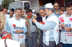 İşçilere hitaben bir konuşma yapan Başkan Kocaoğlu, kendisinin de 27 yaşına kadar geçici tarım işçisi olarak çalıştığını söyledi. Dünya görüşünün, felsefesinin emekten yana olduğunu ifade eden Kocaoğlu, Türkiye’de özellikle iş güvenliği konusunda büyük eksiklikler ve sorunlar olduğunu, bu konudaki sorunların giderilmesi için çalışacağını söyledi. İşçilere karanfil de dağıtan Başkan Aziz Kocaoğlu, işçilerle birlikte halay çekti.