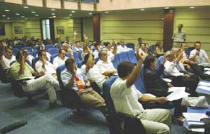 Temmuz ayında yürürlülüğe giren 5393 sayılı Belediye Kanunu gereğince ihtisas komisyonlarının seçimleri yeniden yapılırken, kurulması Belediye Meclisleri'ne bırakılan kesin hesap, sağlık ve hukuk komisyonları da oluşturularak, görev alacak meclis üyelerinin seçimleri yapıldı. Yapılan seçimde Mehmet İlkbahar (AKP) 1. başkan vekili olurken, divan katipliğine Reşat Aslan (AKP), Fahrettin Kocabıçak (AKP) ve Mesut Kocamaz (CHP) seçildi. Encümenliğe ise Gülseren Yeğin (AKP), Avizer Baytak (AKP) ve Bedri Akyüz (AKP) getirildi.