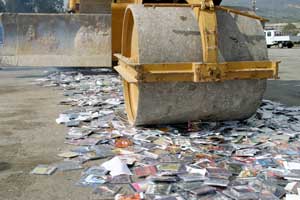 Kültür ve Turizm Bakanlığı Fikir ve Sanat Eserleri İl Denetim Komisyon üyelerinin gözetiminde Konak Belediyesi Gediz Şantiye alanında boşaltılan 200 bin korsan cd, silindirler ile ezildi.