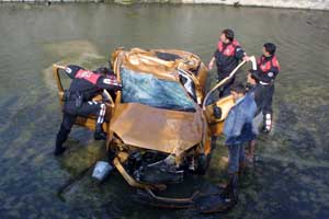 Konka'ta, direksiyon hakimiyetini kaybeden bir sürücü, 10 metre aşağıda bulunan dereye uçtu. Kazada otomobil içerisinde sıkışan sürücü, AKS 110 ekipleri tarafından çıkartıldı. Derenin içerisinde sedyeye konulan sürücü, polislerin yardımıyla dereden çıkartılarak ambulansa bindirildi.