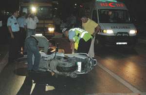 Bu sırada arkadan gelen ve üzerinde Ferdi Gür (26) ile Mehmet Karaalpin (32) bulunduğu 34 KE 607 plakalı motosiklet kamyonete büyük bir hızla arkadan çarptı. Çarpma sonucu motosikletin üzerinden fırlayan Gür ve Karaalp, olay yerinde hayatını kaybetti. Bir taksi durağındaki şoförlerin ihbarı üzerine olay yerine gelen sağlık ekipleri, 2 gencin kaza sırasında öldüğünü belirledi.