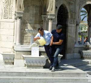 Cezaevinden 1 ay önce çıktığı belirlenen Almanyadan işçi emeklisi Şeref Bağlı (64), bugün saat 10.30 sıralarında elindeki benzin bidonuyla Konak Meydanı Saat Kulesi önüne geldi.