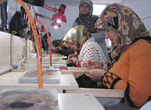 Kütahya Valiliğinin, şehirdeki yoksullara hem kurs, hem de iş imkanı sunduğu proje büyük ilgi görüyor. Fakir ailelere mensup kadınların eğitimi ve üretim sürecine dahil edilmesi için başlatılan proje, Sosyal Yardımlaşma ve Dayanışma Vakfı vasıtasıyla yürütülüyor.