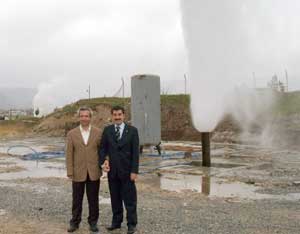 Kütahyanın Simav İlçesinde 700 metre derinlikten çıkan 160 derecelik kaplıca suyundan elektrik üretmek için başlatılan çalışmalar sürüyor.