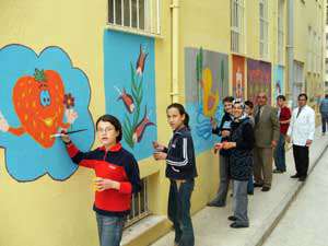 Okul Müdürü Hüseyin Cihan, okul duvarlarının resim öğretmeni Recep Duru ile kabiliyetli öğrenci ve veliler tarafından çeşitli çiçek ve çizgi film kahramanlarının figürleriyle boyanıp çiçek bahçesine dönüştürüldüğünü belirterek, "Bu çalışmalarımızın hedefi, okulumuzu öğrencilerimize sevdirebilmek. Aynı zamanda hem öğrencilerimizin resim yeteneklerini ortaya çıkarmış oluyoruz, hem de istenmeyen yazılardan duvarları kurtarıyoruz. Çizilen çiçek resimleri, Anadolu insanının hayat biçimini yansıtan halı-kilim motifleri ve çizgi film kahramanlarının seçimleri tamamen öğrenci ve gönüllü hanımlarımıza ait. Bu şekilde onların en çok nelerden hoşlandıklarını da görmüş ve anlamış oluyoruz" diye konuştu.