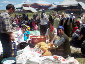 Bu arada, mahalle kadınları, sac ocaklarında davetliler için gözleme pişirdi.
