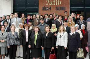 Fatih Nikah Salonunda gerçekleştirilen nikah törenine, Vali Orhan Işının eşi Aysel Işın, Tugay Komutanı Tuğgeneral Sami Demirelin eşi Nesrin Demirel, Başsavcı Sait Gürlekin eşi Jale Gürlek, Dayanışma ve Güç Birliği Başkanı Mübeccel Kafkaslı, kadın dernek başkan ve üyeleri ile evlenecek çiftlerin yakınları katıldı.