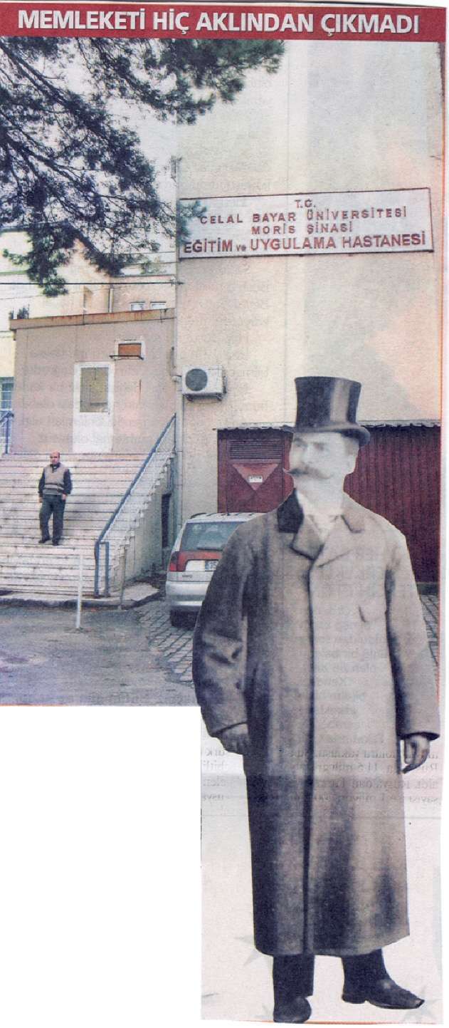 lı" olarak büyük bir servetin sahibi oldu. Unutmak ne kelime, hep doğduğu toprakların hasretiyle yaşadı. 1929 yılında hayatla vedalaşırken, Manisa’sına bir çocuk hastanesi kurulmasını vasiyet etti. Kurduğu vakıf, 1933’te onun arzusunu yerine getirdi. Adı biraz değiştirilmiş haliyle "Moris Şinasi" olarak, kurduğu hastaneye verildi.