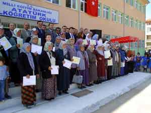 Kursiyerlere başarı belgelerinin dağıtımı için Atatürk İlköğretim Okulu'nda tören düzenlendi. Törene Sarıgöl Kaymakamı A. Rauf Ulusoy, İlçe Milli Eğitim Müdürü C.Tayyar Tekin, Halk Eğitim Müdürü Halil Tuna ve resmi daire amirleri ile belge almaya hak kazanan kursiyer bayanlar ve ilköğretim okulunda okuyan öğrenciler katıldı.