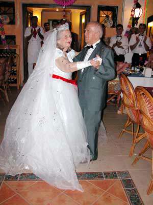 Ev hanımı Behiye Kırelli, Fidan Restorandaki kutlamaya ilk kez 12 Mayıs 1945te giydiği gelinliğiyle, emekli doktor Sahip Kırelli ise papyonlu damat elbisesiyle katıldı. Restorandaki turistlerin hayran bakışları arasında birbirlerini sık sık öpen gelin ve damat, bol bol da dans etti.