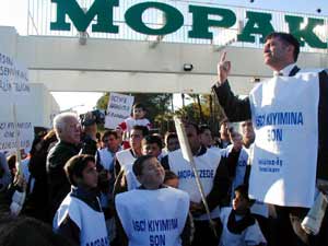 MOPAK Kağıt Fabrikası önünde toplanan öfkeli işçiler, aileleriyle birlikte slogan attı. Son üç yılda fabrikadan 640 işçinin çıkartılması tepki gösteren Selüloz-İş Sendikası’na bağlı işçiler, ellerinde pankartlarla MOPAK Dalaman Kağıt Fabrikası önüne yürüdü. Yürüyüşe, fabrikadaki iş kazaları nedeniyle sakat kalan işçiler de destek verdi.