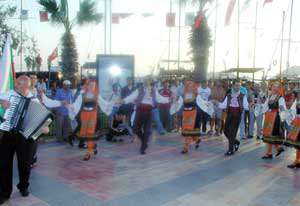 Turgutreis Atatürk Meydanında toplanan halk oyunları ekipleri, kendi ülkelerinin halk oyunlarını sergiledi. Atatürk Meydanında gün batımını seyreden gruplar, daha sonra sahilden Mandalinci Otele yürüdü. Mandalinci Otelde düzenlenen tanışma kokteyline Muğla Valisi Hüseyin Aksoy, Bodrum Kaymakamı Osman Ekşi, Turgutreis Belediye Başkanı Ali Server Yazgan ve çok sayıda davetli katıldı.