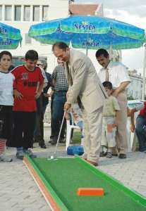 Belediye Başkanı Saatcı, Keramettin Yılmaz ve diğer protokol yetkilileri parkın açılışında mini golf gösterisi de yaptı.