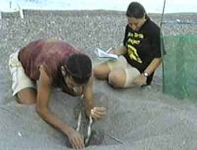 Denizli Pamukkale ve Avusturya Viyana Üniversitesi´nden gönüllü öğrenciler daha önceden tespit ettikleri yuvadan Caretta Caretta yavrularının çıkmasını beklemeye başladı.