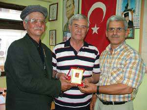 Ziyaret sonunda Kore gazisi Ömer Hikmet Kılıç, dernek yönetimi adına Korgeneral Türeye plaket verdi.