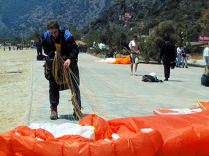 Dünyaca ünlü Ölüdeniz’de 1900 metre yüksekliğindeki Babadağ’a yamaç paraşütü sporu için gelen yabancı turistleri, zaman zaman meydana gelen kazalar yıldırmıyor. Özellikle single atlayışlarında meydana gelen kazaların dikkatsizlik ve fazla cesaretten kaynaklandığını belirten Ölüdeniz Yamaç Paraşütü Kalkındırma Derneği Başkanı Murat Tüzen, "Yamaç paraşütü sporu hobi açısından çok tutulan bir spor, ama gerekli önlemler tam alınmadığı zaman üzücü kazalar yaşanmaktadır. Ölüdeniz’de bulunan yetkili şirketler ve pilotlar ile yapılan uçuşlarda şu ana kadar bir kaza meydana gelmedi. Ama bu spor için yeterince önlemler alınmıyor. Sahte ve fotokopi sertifikaları ile uçuş yapan yabancı turistler geliyor. Bunlar için bir kanun çıkartılmadığından bu şekilde devam ediyor" dedi.