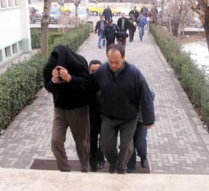 Geçtiğimiz Perşembe günü gün ortasında Halkbankası Uşak Şubesi’nde hırsızlık girişiminde bulunan Nevzat Kılıç (31), Velit Es (30) ve Volkan Güdücü (19), nöbetçi savcılık tarafından tutuklanarak Uşak Cezaevi’ne gönderildi. Uşak Emniyet Müdürlüğü’nde yapılan üst aramasında sahte kimliklerin yanısıra uyuşturucu madde de taşıdıkları belirlenen zanlıların hırsızlık, uyuşturucu tacirliği, gasp ve kapkaç gibi bir çok olaydan sabıkalı oldukları anlaşıldı.