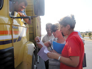Yapılan denetimlerde kaçak kömür taşıyan kamyonlara 450 YTL para cezası kesilirken, kömür kamyonunun Uşak'a girmesine izin verilmiyor.
