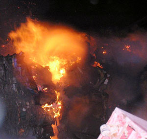 Uşak'ta bir kağıt hurda deposunda çıkan yangın, büyük çapta maddi hasara neden oldu. Yoğun duman nedeniyle güçlükle müdahale edilen yangında, 200 ton hurdalık kağıt yandı.