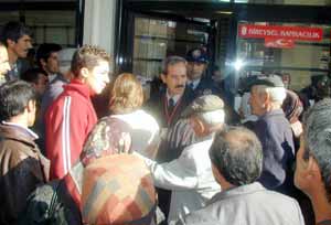 Sabahın erken saatlerinde Ziraat Bankası Adıyaman Şubesi önünde toplanan yaşlılar, saatlerce kuyrukta beklediler. Torunlarının veya yakınlarının yardımı ile bankaya gelen yaşlılar bir an önce maaşlarını alabilmek için adeta birbirlerini ezdiler. Bankaya girmek isteyen yaşlı kadınlarla itişip kalkışan görevliler, zor anlar yaşadı. El arabası ile maaş almaya gelen bir kadın, saatlerce banka kapısında bekledi. Yaşlı kadınların içeri girdiğini gören görevliler, kapıyı kapatınca bir kadın kapı arasında sıkıştı. Yaşlı kadının yardımına görevliler ve sırada bekleyen yaşlılar koştu.