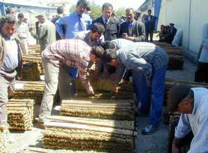 Tütün üreticilerinden kimileri motorlarla, kimileri minibüslerle tütünleri getirirken kimileri ise, kamyonetle tütünlerini teslim etmek için TEKEL Adıyaman Deposu önünde uzun kuyruklar oluşturuyor. Üreticiler sırası geldiğinde depo önünde bulunan alanda tütün balyalarını sıralıyor ve eksperler tütünleri kontrol ederek fiyat belirliyor.