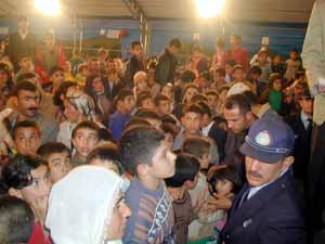 AKP Adıyaman Gençlik Kolları tarafından 750 fakir çocuğa dağıtılan giyecek yardımında küçük çocuklar ezilme tehlikesi atlattı.