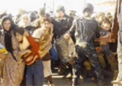 Bankanın önünde düzensiz bir kuyruk oluşturan kadınlar, içeri girebilmek için birbirlerlerini itmeye başladı.