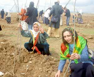 DEHAP Batman Kadın Kolları üyesi yaklaşık 200 kişi, Beşiri yolundaki ormanlık alanda biraraya gelerek fidan dikti. Burada bir açıklama yapan DEHAP Batman İl Kadın Kolları Sözcüsü Selma Bozkurt, teröristbaşı Öcalanın 56. doğum gününü kutladıklarını belirterek, "Biz kadınlar burada barış ve özgürlük fidanı dikiyoruz. Hasret olduğumuz özgürlük ve barış taleplerine kavuşmak için Öcalan ile diyalog sağlanmalı ve barışın yolu açılmalıdır" dedi.