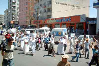 Diyarbakır Caddesi üzerinde saat 11.30 sıralarında toplanan grup, yolu trafiğe kapatarak basın açıklaması yaptı. İmralı adasında tutuklu bulunan Abdullah Öcalan'ın kasten avukatlarıyla görüştürülmediğinin iddia edilerek, bu politikadan vazgeçilmesinin istendiği açıklamada, "Bölge tekrar savaş politikalarıyla ısınmakta, operasyonlar yoğunlaşmakta" denildi.
