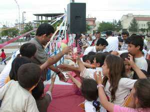 Pazaryeri Mahallesindeki parkın açılışında çocuklar meyve suyu, kek, hikaye kitapları ve diş fırçalarına hücum edince izdiham yaşandı. Uzun süre parkın açılışını bekleyen çok sayıda çocuk, yapılan konuşmalar ve kurdelenin kesilmesinin ardından hediyelerin dağıtıldığı alana hücum etti.