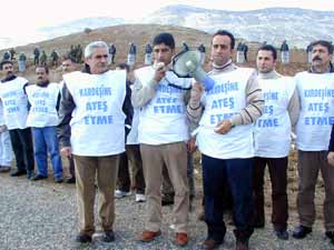 4 minibüsle, bir süre önce Hasankeyf-Gercüş Karayolu’na döşenen mayının uzaktan kumanda ile patlatılması sonucu bir astsubayın şehit olduğu, 3 askerin de yaralandığı mevkiye gelen grup, burada bir basın açıklaması yaptı. Açıklamayı okuyan DEHAP İl Başkanı Öztüzün, olaydan duyduğu üzüntüyü dile getirip, herkesi 1 dakikalık saygı duruşunda bulunmaya davet etti.