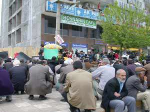 Gülistan Caddesinde toplanan yaklaşık 200 kişilik grup, AK Parti İl Teşkilatına kadar Öcalan sloganlarıyla yürüdü. Polis, grubun il başkanlığına girmesine izin vermeyince, grup AK Parti önünde 5 dakikalık oturma eylemi yaptı.