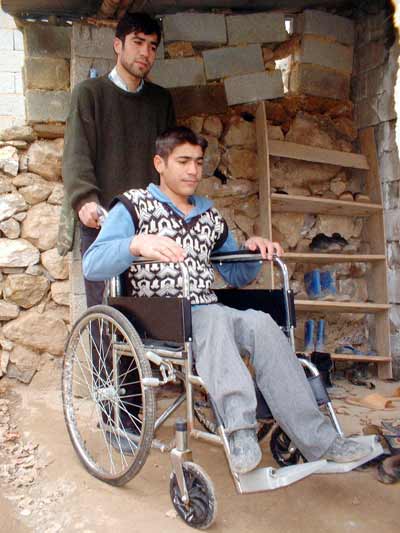 Batmanın Kozluk İlçesinde elleri üzerinde yürüyen özürlü Uğur Acet, Konya Mevlana Derneğinden gönderilen tekerlekli sandalyeyi, fazla olduğu gerekçesiyle ilköğretim 6. sınıf öğrencisi özürlü Sultan Sakınça hediye etti.