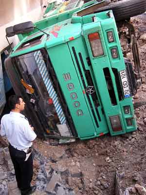 Apartmanın zemin katındaki evde şans eseri kimsenin olmaması, can kaybını önledi. Evsahibi Şerafettin Alkan, "Belediyenin asfalt çalışması vardı. Sabah saatlerinde evden çıktım. Kimse evde yoktu. Asfalt yüklü kamyonun ağırlığı nedeniyle yol çükünce kamyon evimizin duvarlarını yıkmış. Evde kimsenin olmaması büyük bir felaketi engelledi" dedi.