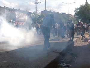 Yürüyüşe geçen grup, İskan Evleri bölgesinde Çevik Kuvvet ile karşı karşıya geldi. Kendisine taş atan göstericilere biber gazı sıkan ve cop kullanan polis havaya uyarı ateşi açtı.