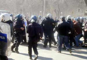 PKK/Kongra-Gel terör örgütü elebaşı Abdullah Öcalanın yakalanış yıldönümünü protesto etmek isteyen gruba polis müdahale etti. Polisin, gruba müdahale etmesiyle yaşanan arbedede 8 kişi yaralanırken 3 polis de göz yaşartıcı gazdan etkilendi.