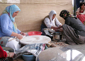 DİKASUM'un Koşuyolu Parkı içinde açtığı kıl çadırda çalışan yoksul göçzede kadınlar, kendi elleriyle yaptıkları yemekleri satarak aile bütçelerine katkıda bulunacaklar. Koşuyolu Parkı'nda kurulan kıl çadırın açılış törenine Büyükşehir Belediye Başkanı Osman Baydemir, alt kademe belediye başkanlarının yanısıra çok sayıda davetli katıldı.