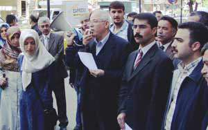 Diyarbakır Ofis semti Ekinciler Caddesindeki İş Bankası önünde toplanan Mazlum-Der, Özgür-Der, HUDER ve Kürt-Der üye ve yöneticileri son günlerde yaşanan gerginliklerin bitirilmesini istedi.