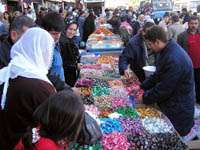 Diyarbakır’da önceki yıllarda Gazi Caddesi’nde kurulan işportacı pazarı bu yıl da vatandaşın hizmetine açıldı. Birçok ürünü bulmanın mümkün olduğu pazar, özellikle büyük mağazalardan alışveriş yapamayanların uğrak yeri oluyor. Sabahın erken saatlerinden itibaren tezgahlarının başına geçen işportacılar, kendilerinden genellikle dar gelirli vatandaşlarının alışveriş yaptığını söyledi. Bayram öncesi işlerinin iyi gittiğini ifade eden işportacılar, "Satışlardan memnunuz. Geçen yıl krizin etkisiyle kimse yüzümüze bakmıyordu. Ancak bu yıl işler açıldı" dediler.